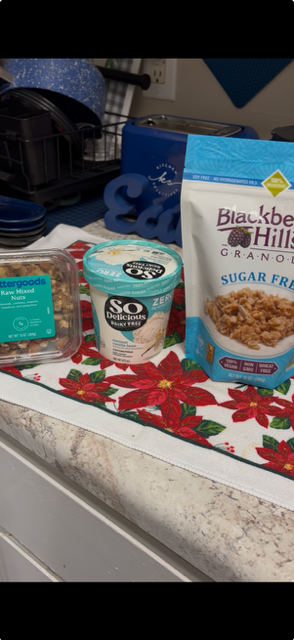 Today I chose plain, unsweetened dairy-free yogurt, fresh blueberries, and raw mixed nuts—real food, real fuel.